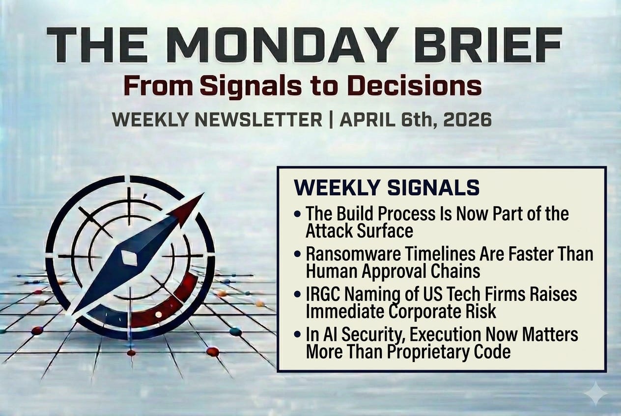 What connects them is not sophistication. It is the quiet expiration of things defenders have been treating as fixed: that a well-known package name implies a known package, that human-in-the-loop response is fast enough, that nation-state targeting of commercial firms is hypothetical, and that proprietary source code is still a meaningful moat in an AI-driven market. Each of those assumptions was load-bearing. Each of them moved this week.